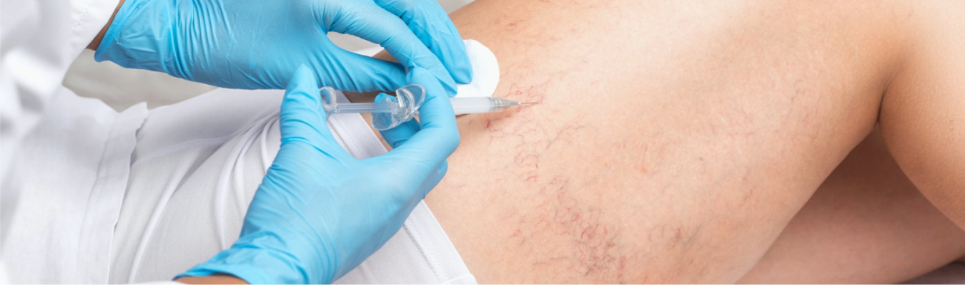 - Sclerotherapy – this type of treatment involves injecting a chemical, known as a sclerosing agent, to damage and scar vein tissue causing the vein to collapse and eventually disappear. Commonly used sclerosing agents include Varithena, VenaSeal, Asclera, and ClariVein. Sclerotherapy can be done as visual sclerotherapy or ultrasound-guided foam sclerotherapy (UGSC) and recovery time is relatively quick.